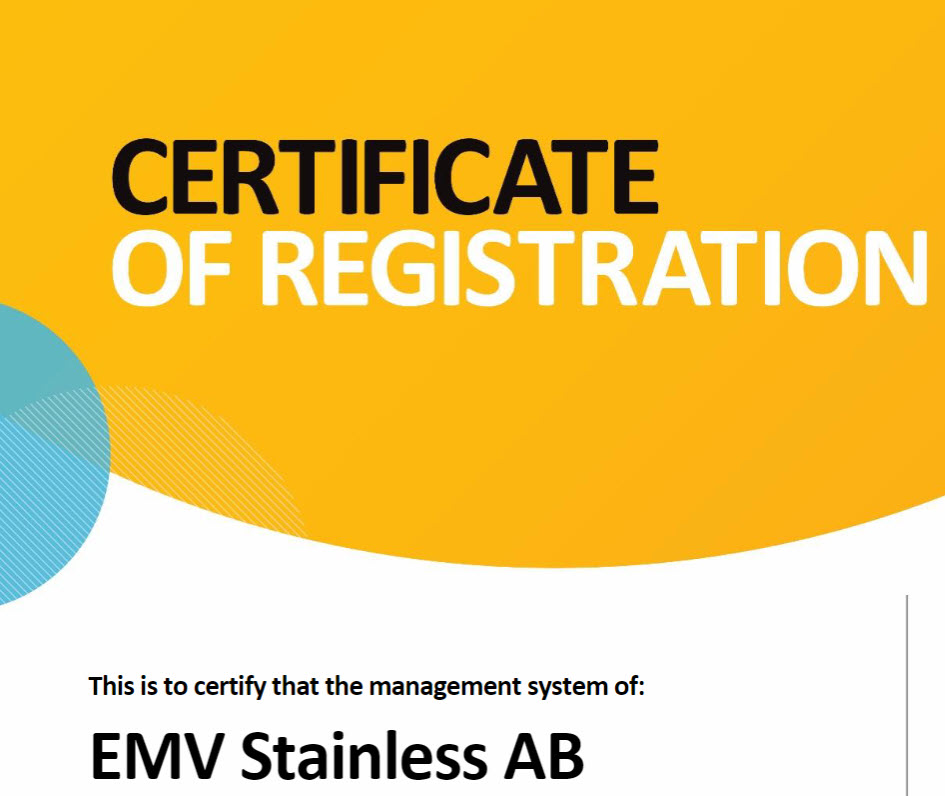 Vi på EMV Stainless kan stoltligen meddela att vi numera är certifierade i ISO 3834-2 för att kunna säkerställa och leverera ännu högre kvalitet till våra kunder.